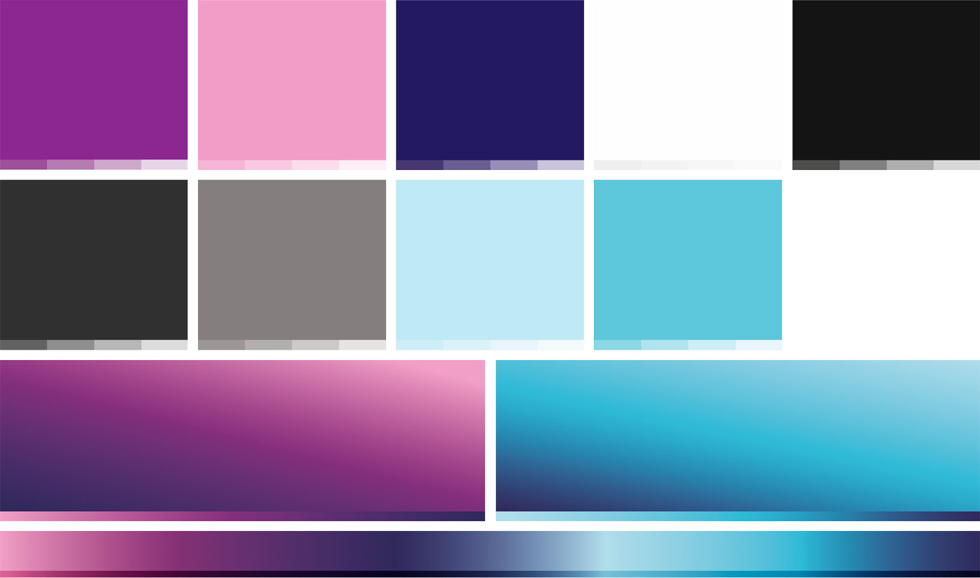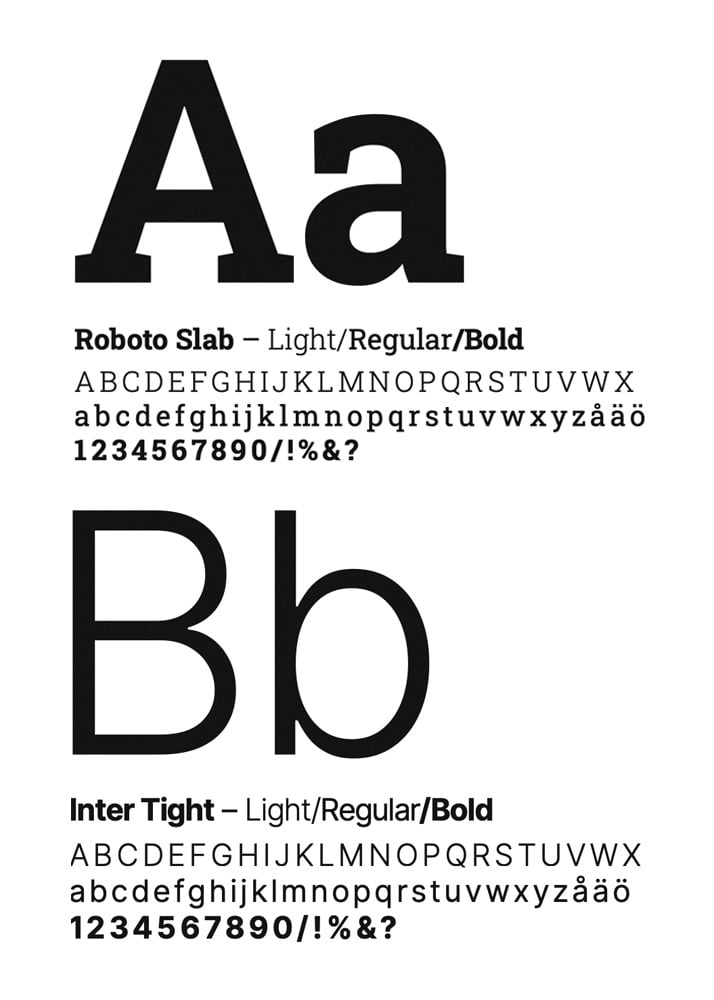 För ett unikt uttryck används två olika grafiska element. Det ena är en slash (/) i början och slutet på rubriker och det andra är en ”avdelare” i form av en linje. Färgen på linjen är en gradient av profilfärgerna.