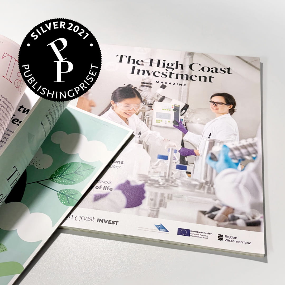 Här kan du läsa The High Coast Investment Magazine 2021 som vann silver i kategorin Verksamhetstidningar.
